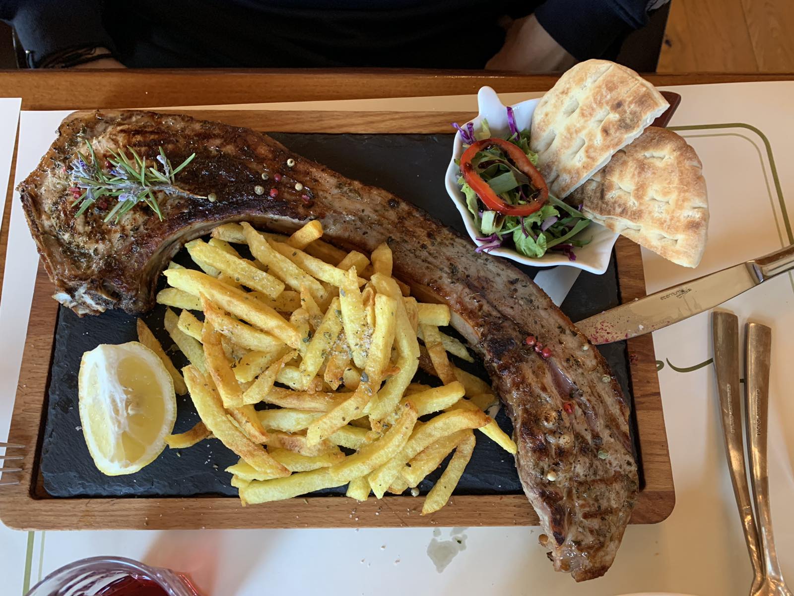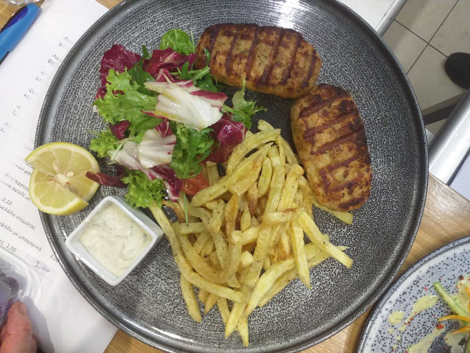 Restaurant with Greek food and grill. Special wine list. Two floors restaurant that oversees Porto Hell’s harbor. Tables available indoor and outdoor. Open everyday. Available on efood. Take away and home delivery.